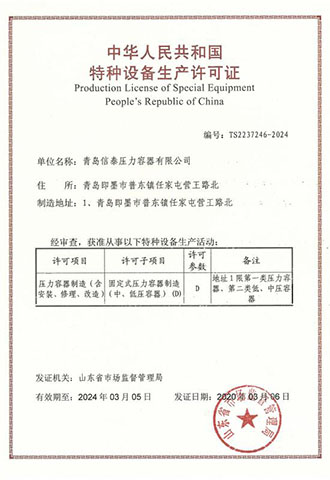 青島信泰壓力容器有限公司擁有山東省質(zhì)量技術(shù)監(jiān)督局頒發(fā)的D1D2類壓力容器設(shè)計(jì)許可證和制造許可證,產(chǎn)品主要有:低中高壓儲(chǔ)氣罐系列、壓縮空氣罐、氮?dú)夤蓿鯕夤蓿瑲錃夤蓿婵展薏讳P鋼儲(chǔ)氣罐、蒸汽儲(chǔ)氣罐、分氣缸,氣體緩沖罐系列、換熱器,穩(wěn)壓罐產(chǎn)品、儲(chǔ)存容器,化工容器、標(biāo)準(zhǔn),非標(biāo)壓力容器系列產(chǎn)品,主要配套與石油、化工、制藥、熱電、啤酒、機(jī)械制造、環(huán)保等行業(yè)所需D級(jí)壓力容器產(chǎn)品,形成多品種的中低壓力容器生產(chǎn)品種及規(guī)模。公司本著“客戶第一,誠(chéng)信至上”的原則,熱誠(chéng)歡迎各界朋友前來參觀、考察、洽談業(yè)務(wù)。